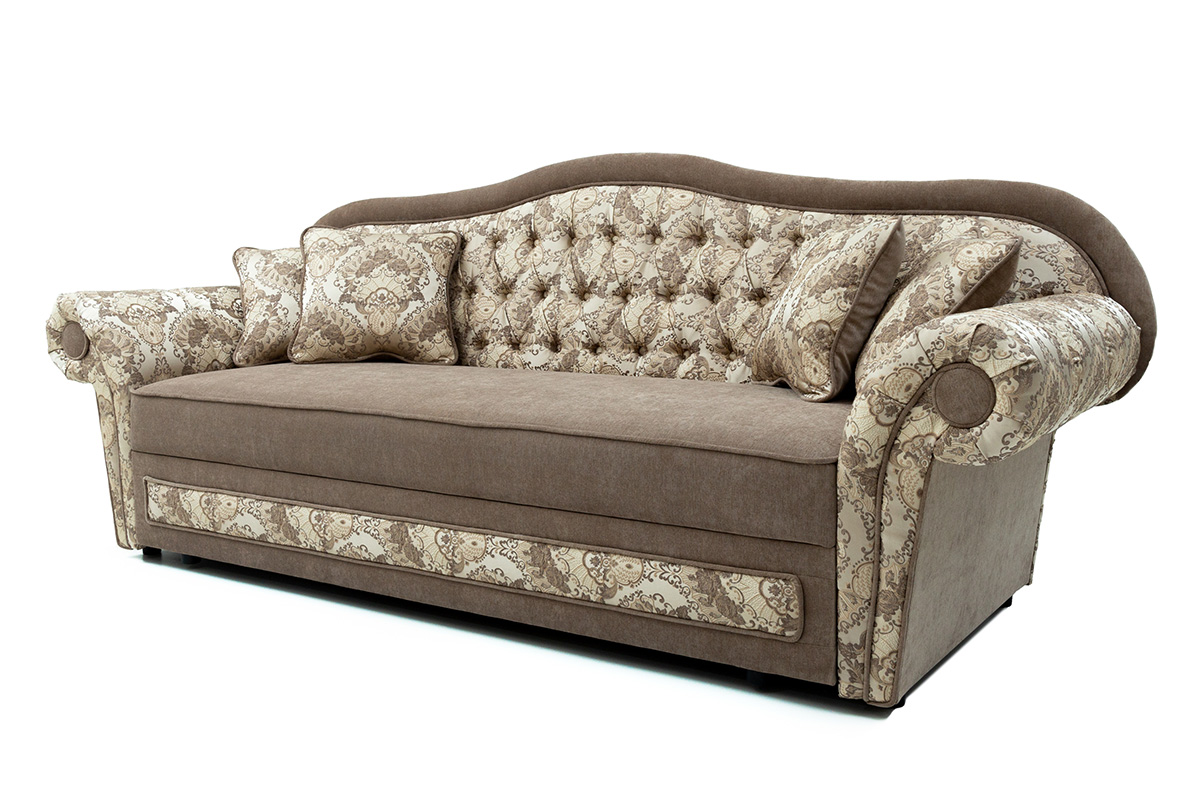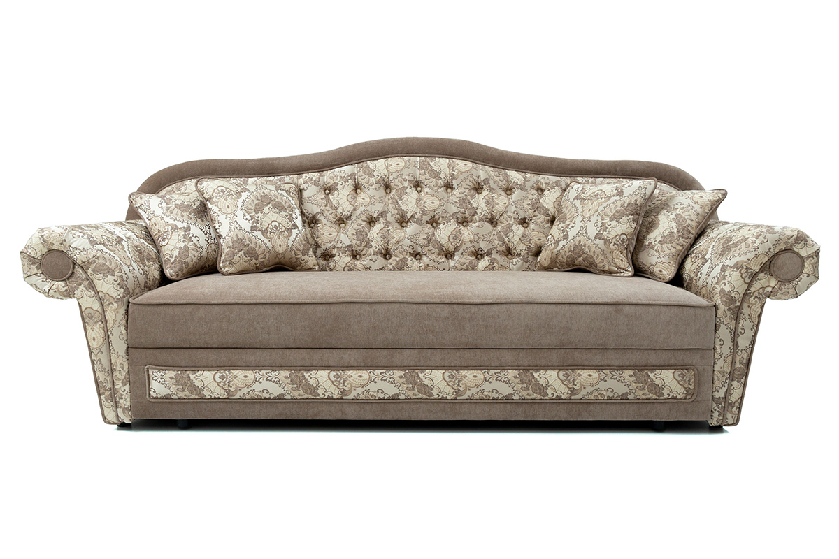 Диван-кровать Людмила — современная классическая модель с оригинальным дизайном спинки и боковин. Верхнее сидение на основе пружинного блока и пружинной змейки. Выдвижное сидение на основе пружинного блока. Спинка на основе пенополиуретана. В разложенном виде представляет 2-х спальную кровать. Так как выдвижная часть дивана находится под основным сидением, отсутствует короб для хранения. Основание сидения – пиломатериалы хвойных пород. В комплект входят 4 декоративные подушки. Может изготавливаться в разных цветовых решениях. Механизм трансформации — «пума»