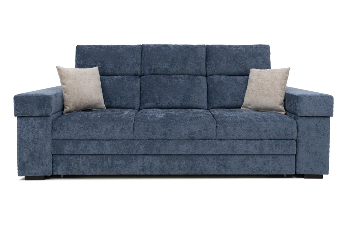 Диван-кровать Наоми — удобная, современная модель, с большим спальным местом. Сидение на основе независимого пружинного блока, пружинной змейки и ППУ. Основание сидения и спинки – пиломатериалы хвойных пород. Отсутствует короб для хранения. Подушки спинки не съемные, оснащены механизмом, который позволяет менять угол наклона. В комплект входят 2 декоративные подушки. Может изготавливаться в разных цветовых решениях. Механизм трансформации — «дельфин».