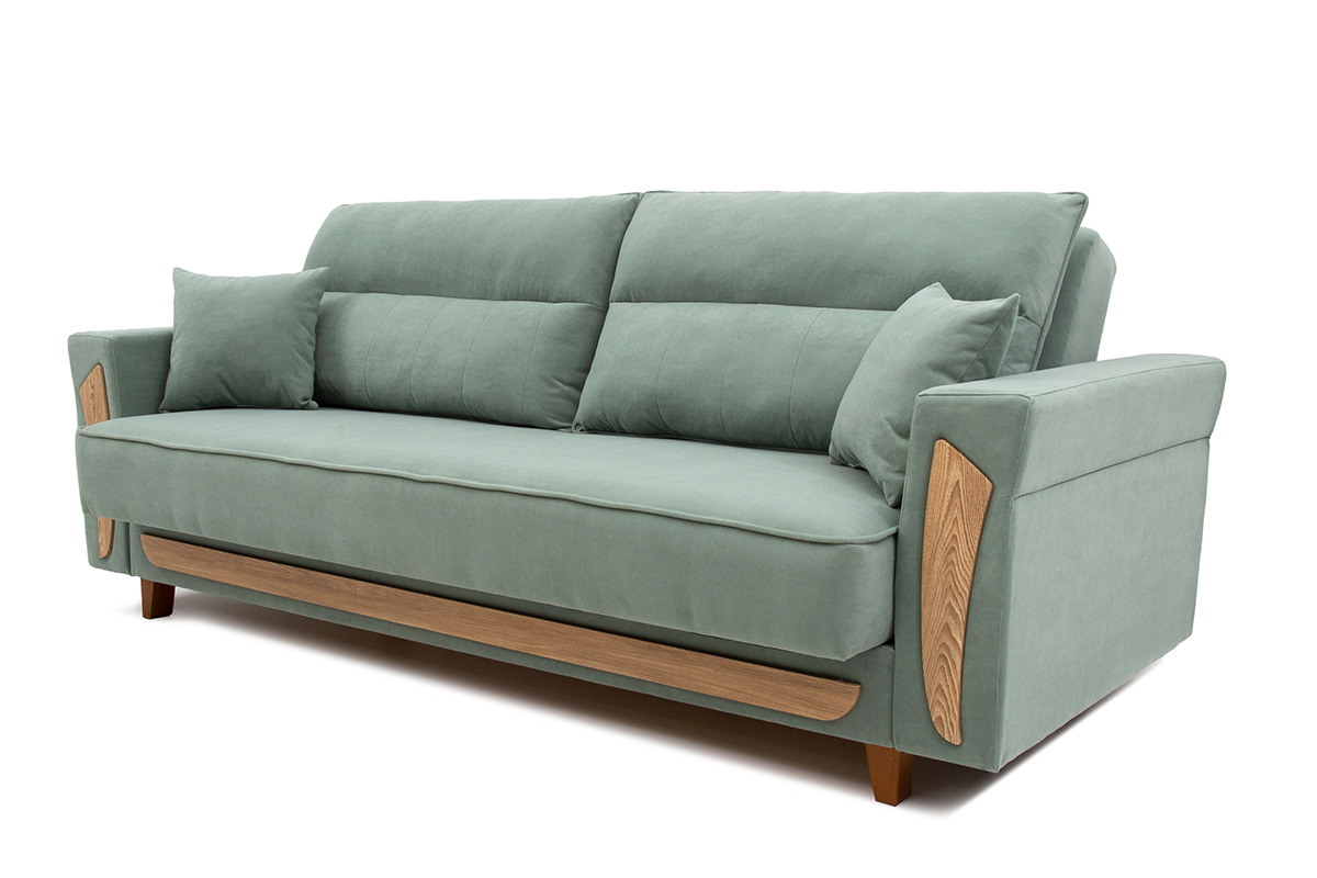 Диван-кровать Николь-3 — современная, практичная модель, предназначенная для ежедневного отдыха. Отличается от предыдущих моделей наличием деревянных накладок. Имеется ящик для хранения. Идеальное решение для небольшой гостиной городской квартиры. Диван на опорах из натурального массива, он будет удачно гармонировать с изделиями из натуральных пород дерева. Может выполняться в различных цветовых решениях. Механизм трансформации — «книга».