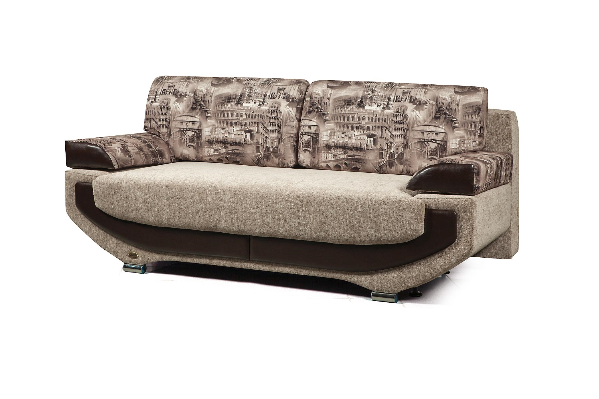 Диван-кровать «Оксфорд» оснащен скошенными фасадами и обивкой с узором, благодаря чему он отлично впишется в классический интерьер квартиры. Модель устанавливается на пол при помощи хромированной опоры.