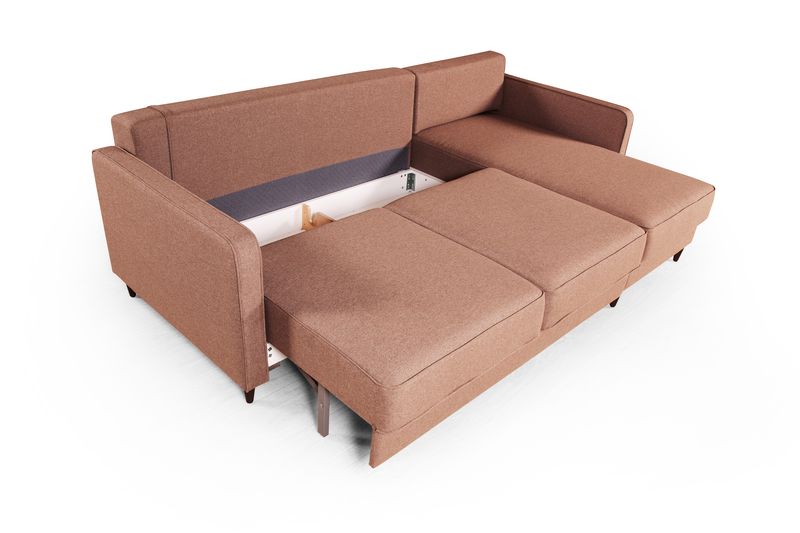 Современный угловой диван со спальным местом. Механизм: тик-так. Деревянные ножки.