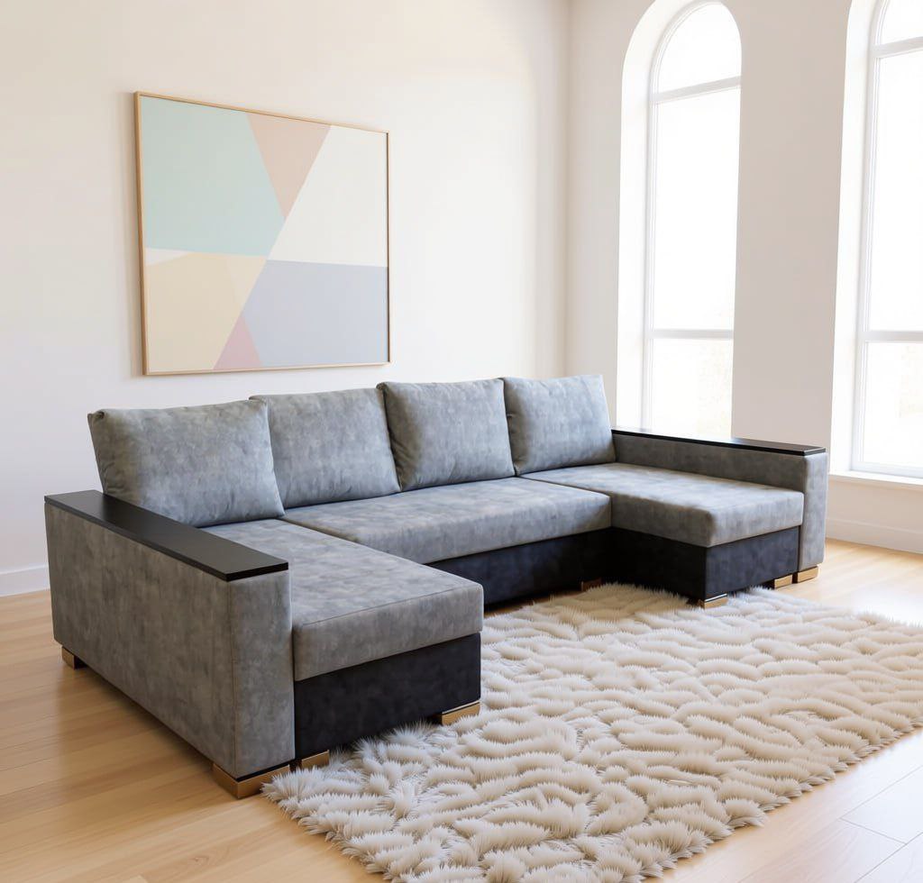 Современный и удобный угловой диван с механизмом трансформации и ящиком для белья.