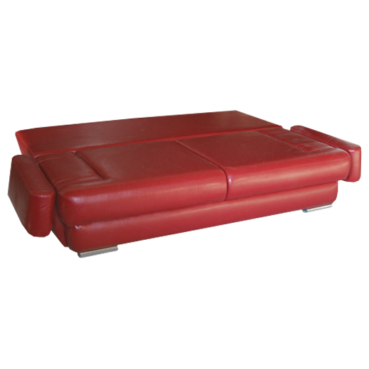 Современный диван «Пингвин» оснащен практичным механизмом раскладки, позволяющим превратить конструкцию в просторное спальное место. Обивка дивана выполнена в красном цвете, делающим модель стильным и оригинальным предметом в вашем интерьере. В качестве мягкой спинки выступают подушки, которые также заменили деревянные или металлические подлокотники.
