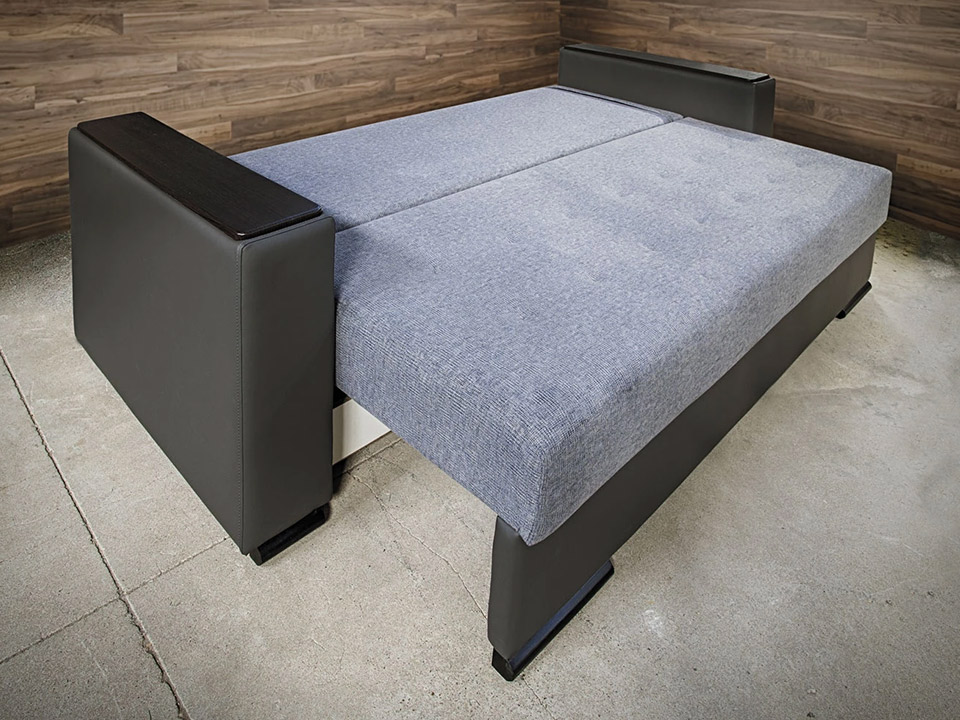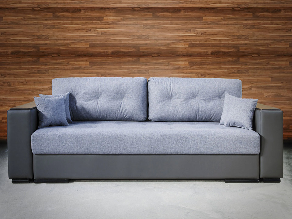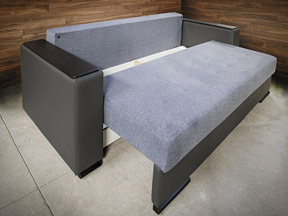 Компактный современный диван с раскладным механизмом и нишей для хранения.