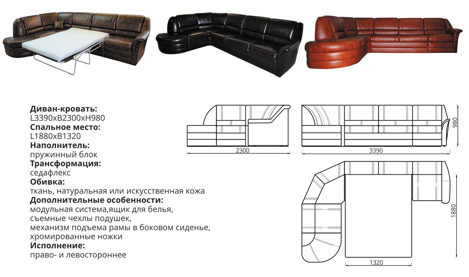 Размер спального места: 2340х1300 (+/-20) мм. Есть ниша для хранения.