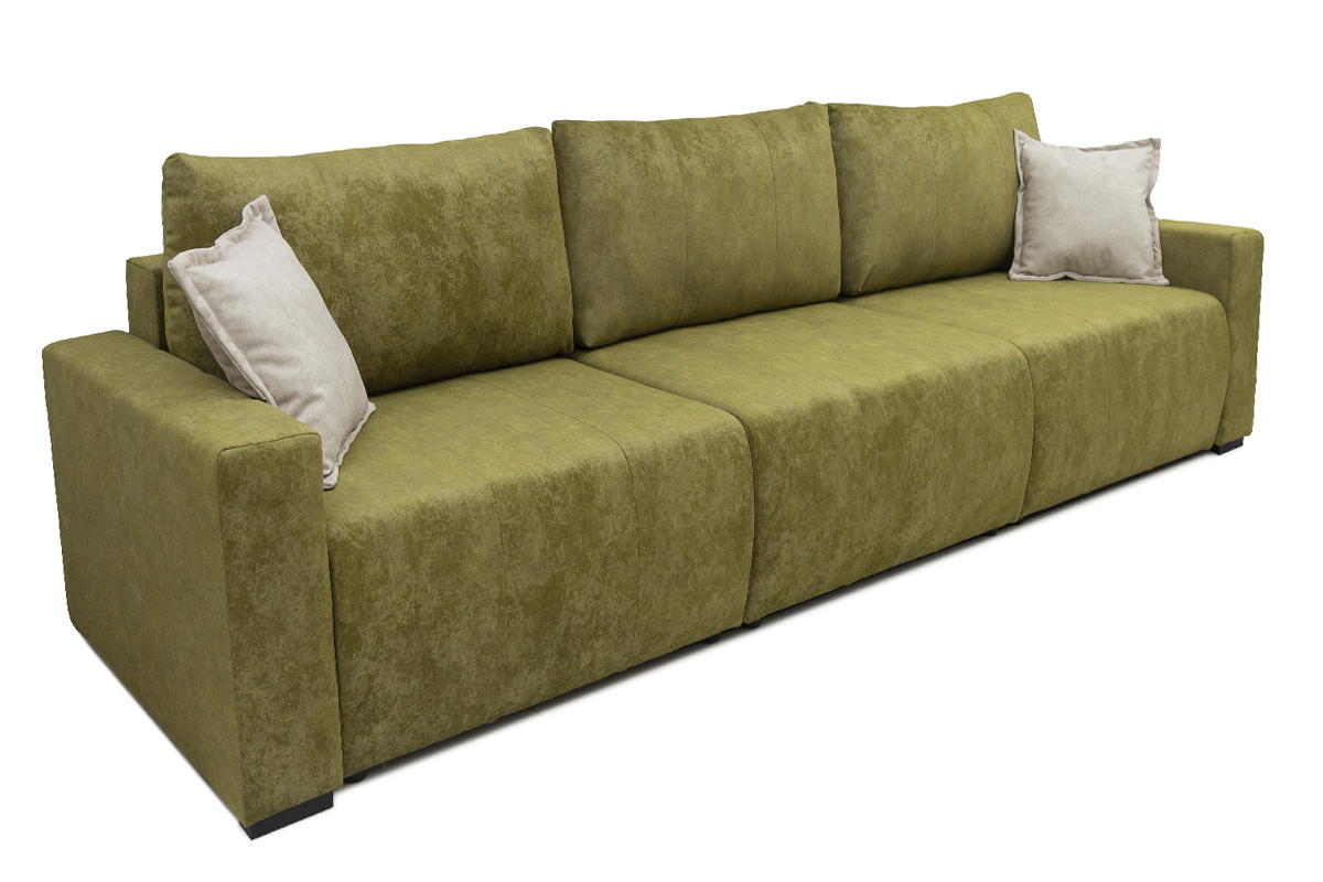 Диван-кровать Роми состоит из трех секций, двух боковин, 3-х больших и двух маленьких декоративных подушек.