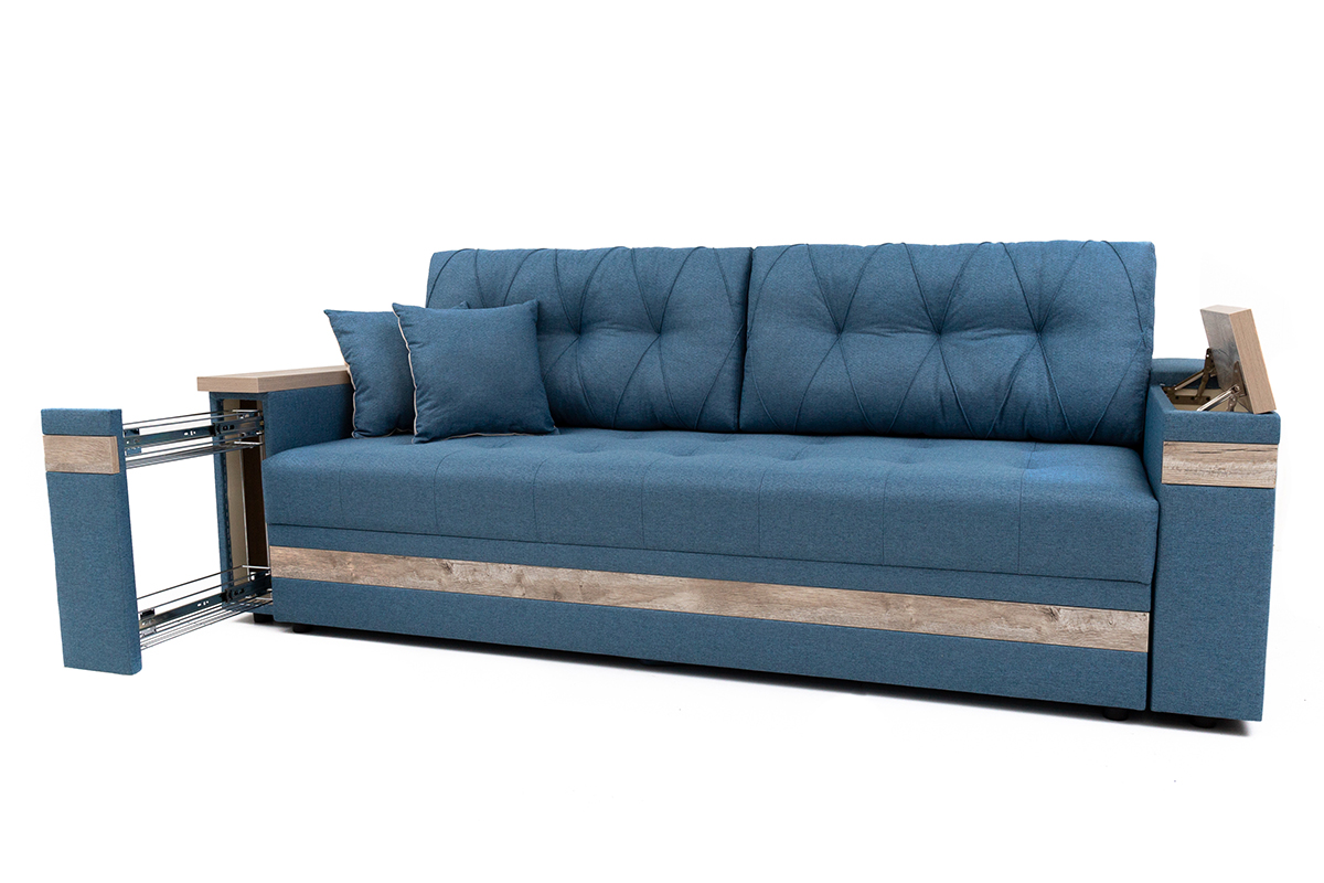 Наличие ящика для белья. Тонкие подлокотники. Удобный механизм трансформации.