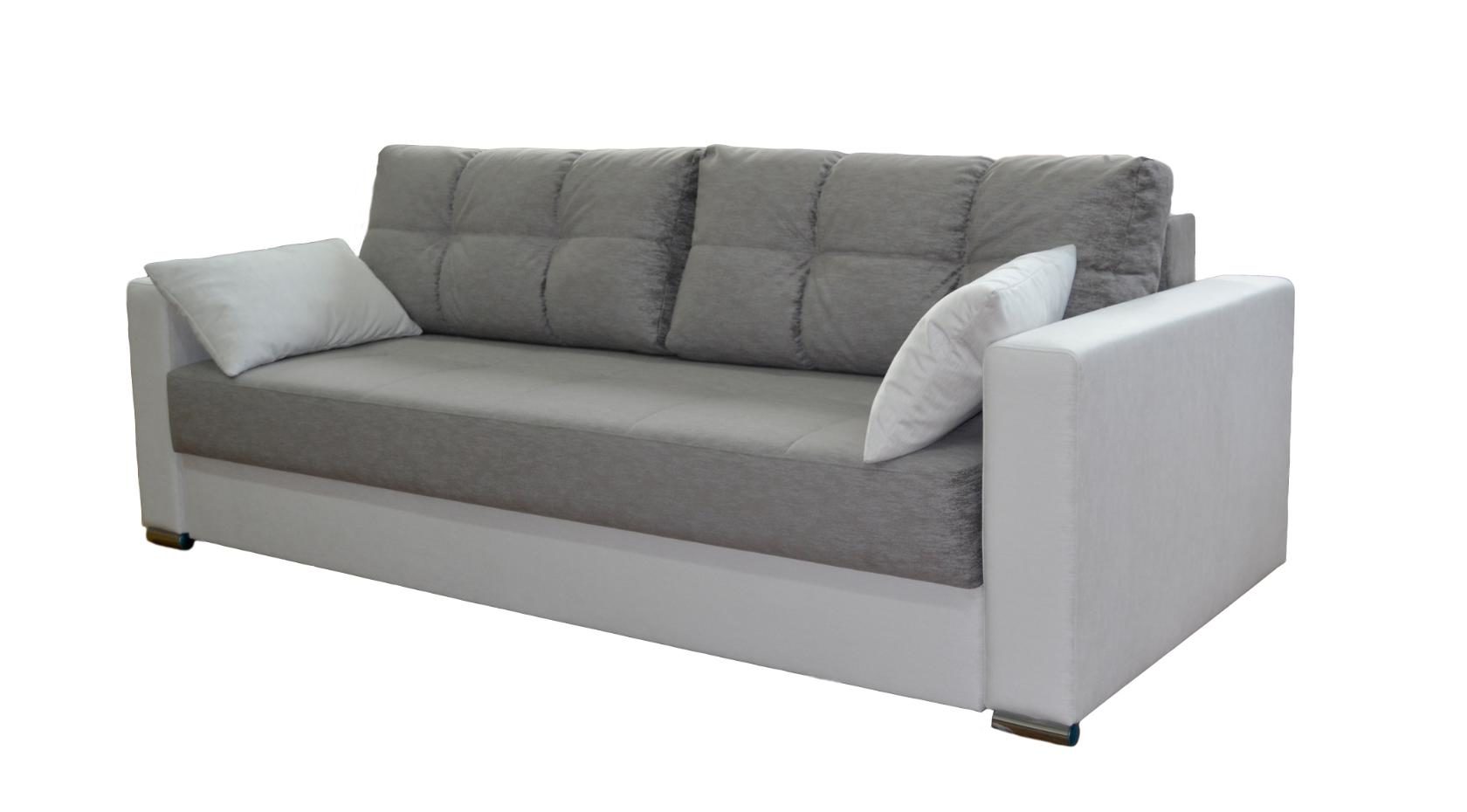 Светлый диван «Сан-Грегори» выполнен в современном стиле, которому свойственны функциональность и прямые линии. Основание обито приятной серой экокожей, которая не впитывает неприятные запахи и очень долговечна. Сидение выполнено при помощи мебельной серой ткани и дополнено большими мягкими подушками, формирующими спинку.
