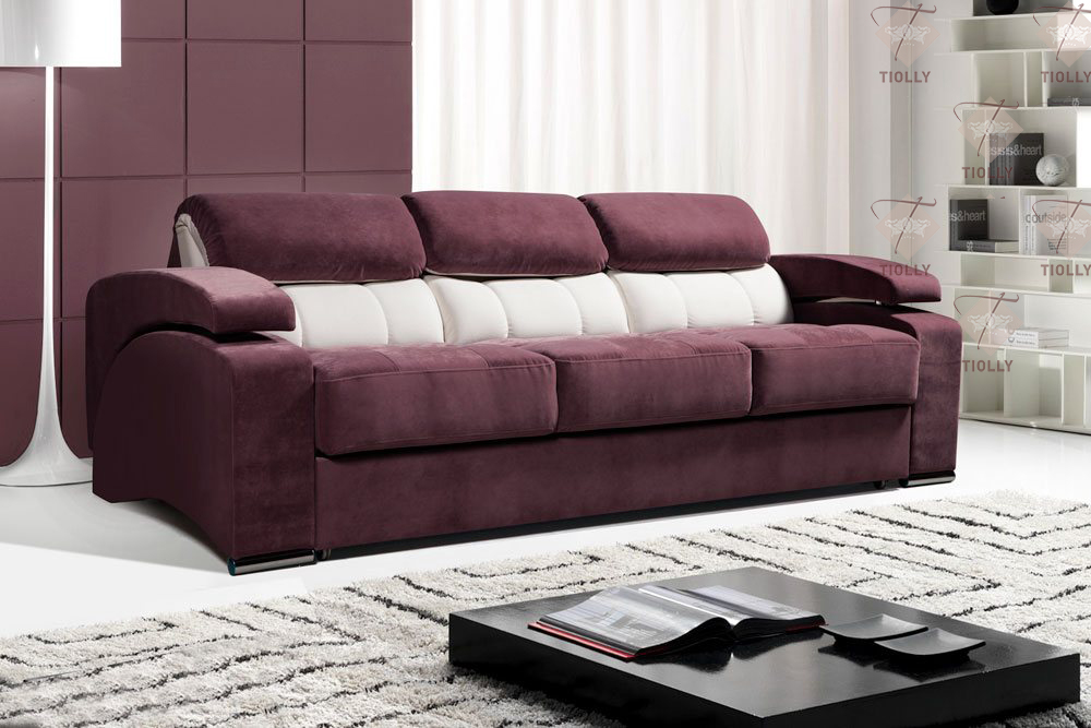 Эта модель просто создана для комфортного отдыха! Очень мягкий диван, на котором можно отдыхать полулежа, с необычным высоким подголовником и оригинальными широкими подлокотниками. Широкий трехместный диван в бордовой фактурной обивке глубокого цвета с подымающимися подголовниками. Диван примечателен необычной формой подлокотников дугообразной формы, отделенных от основной части боковин. Спинки с большим наклоном назад, что удобно для полулежачего положения - для стандартной глубокой посадки достаточно лишь приспустить отгибающиеся мягкие подголовники, тем самым сделав обычный уклон.