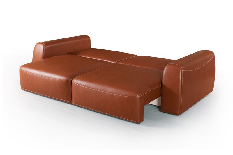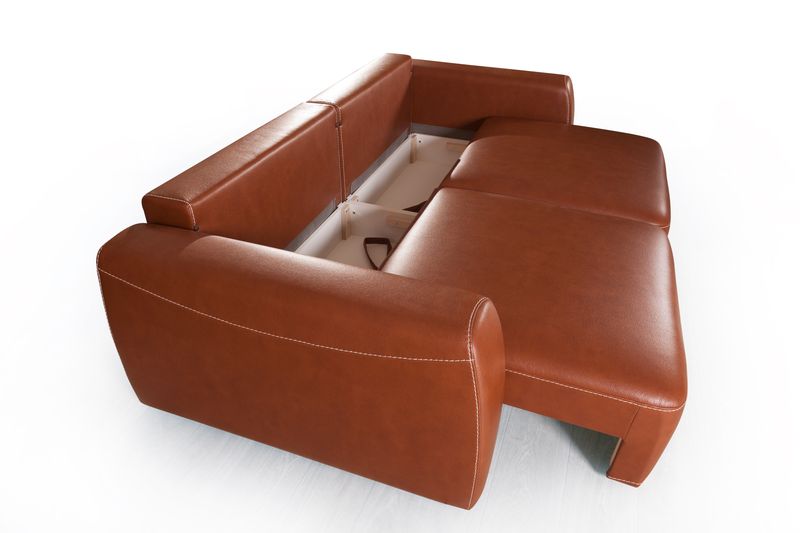 Компактный современный диван с раскладным механизмом и нишей для хранения.