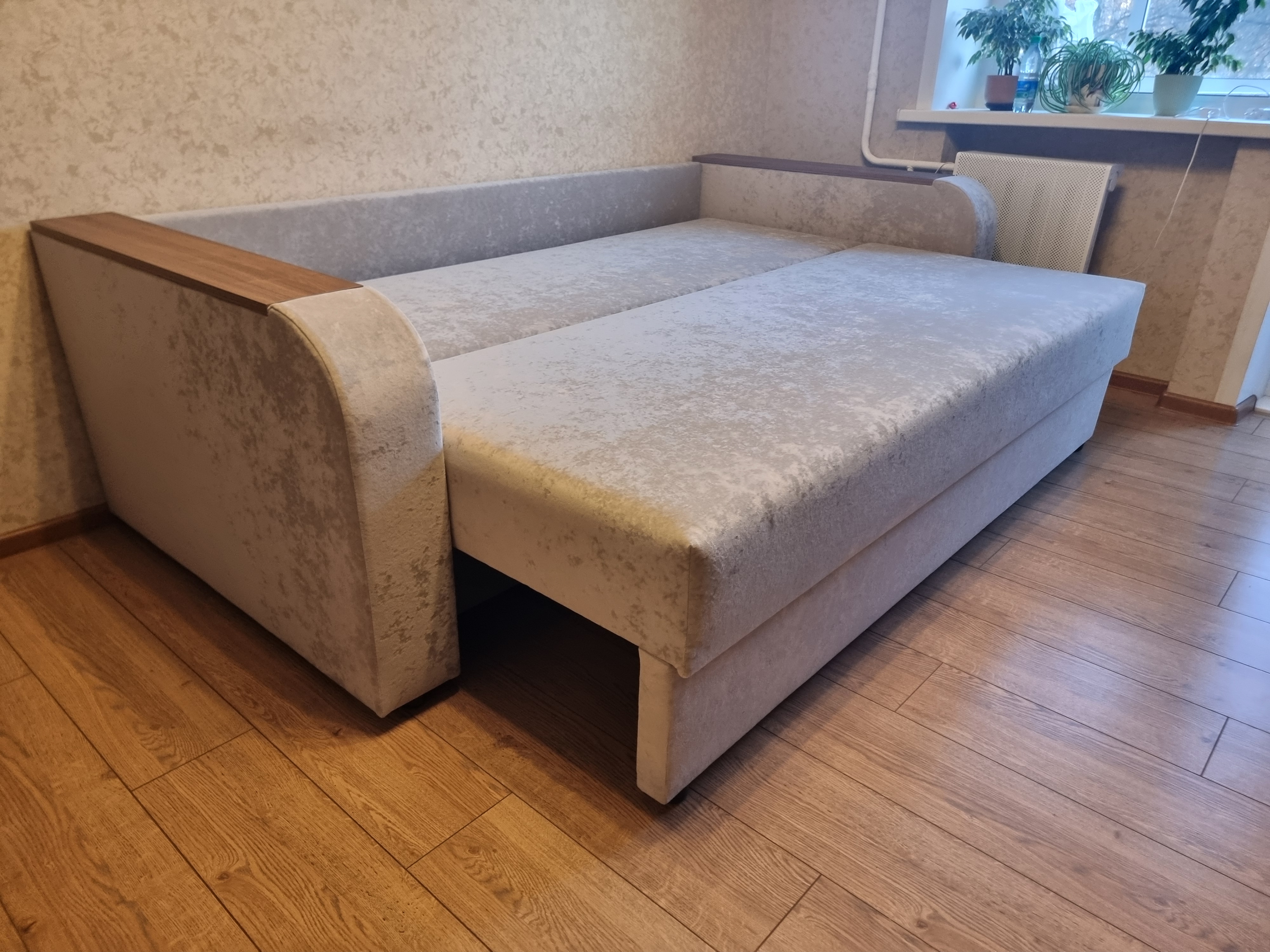 Механизм раскладки: вперед-выкатной. Обивка в пастельных тонах. Длина выкатывания - 2м.