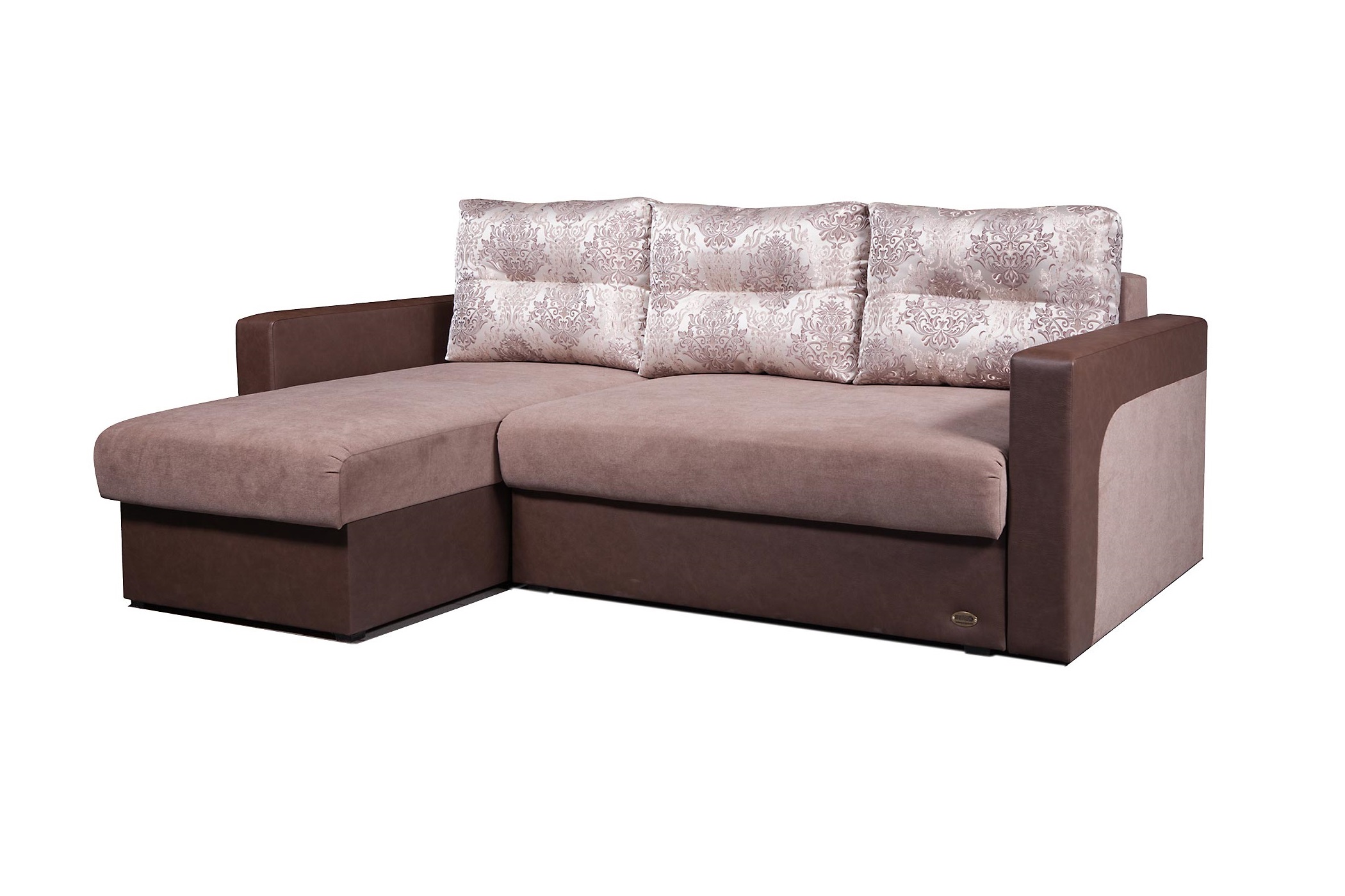код 87216Двухцветный компактный диван угловой конструкции с тремя красивыми подушками.