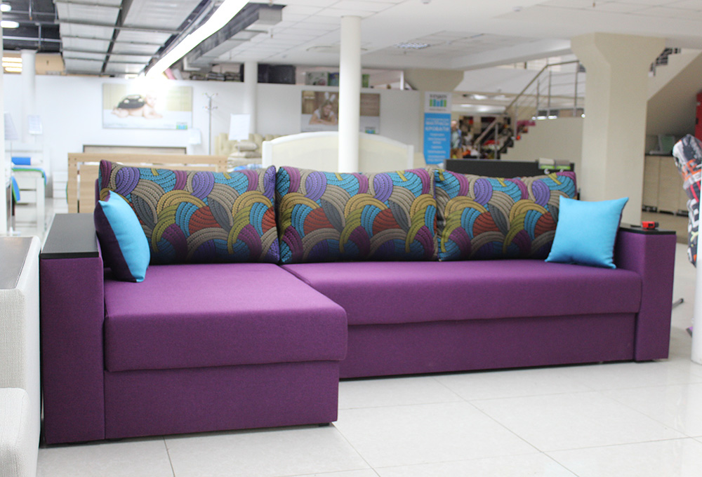 Диван-кровать «Евроталлин угловой» имеет угловую конструкцию. Подлокотники декорированы накладками из ламината. Под заказ можно менять форму подлокотников и подушек.