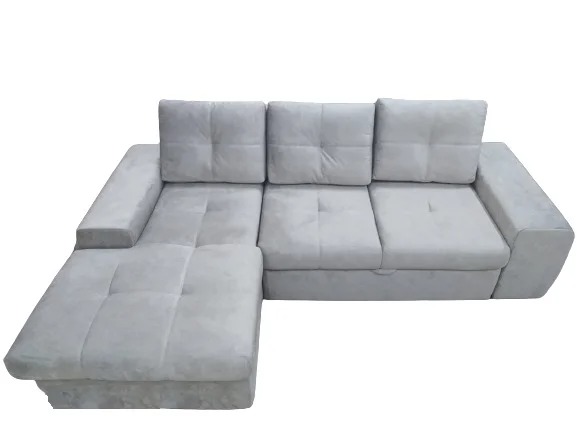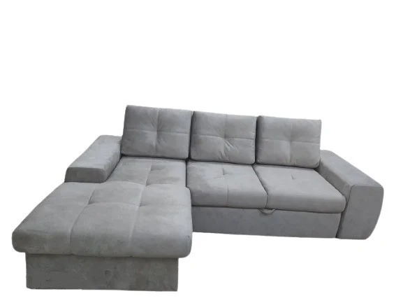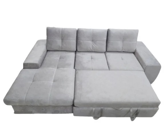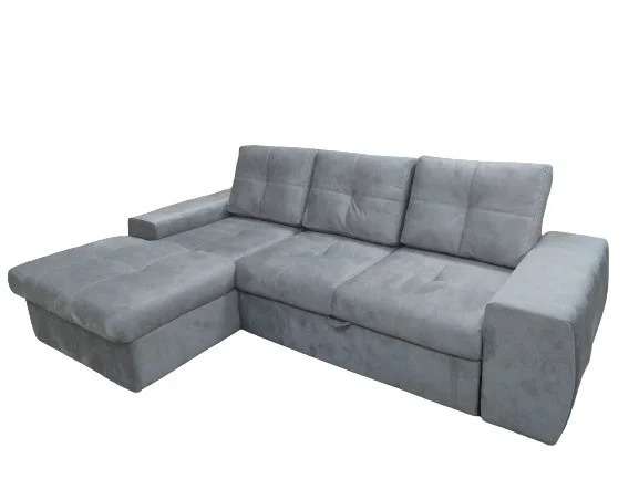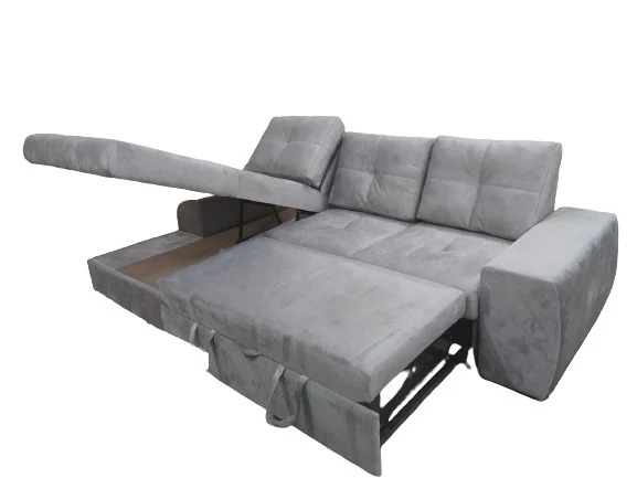 Компактный современный диван с раскладным механизмом и нишей для хранения.