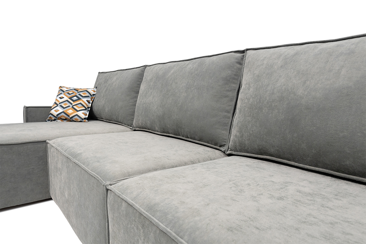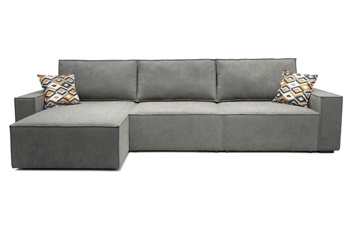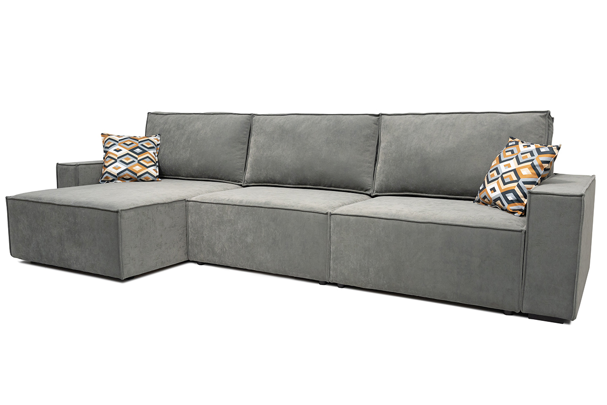 Диван-кровать угловой Ивари состоит из двух малых секций, угловой секции с подъемным механизмом, двух боковых секций, 3-х больших и двух маленьких декоративных подушек.