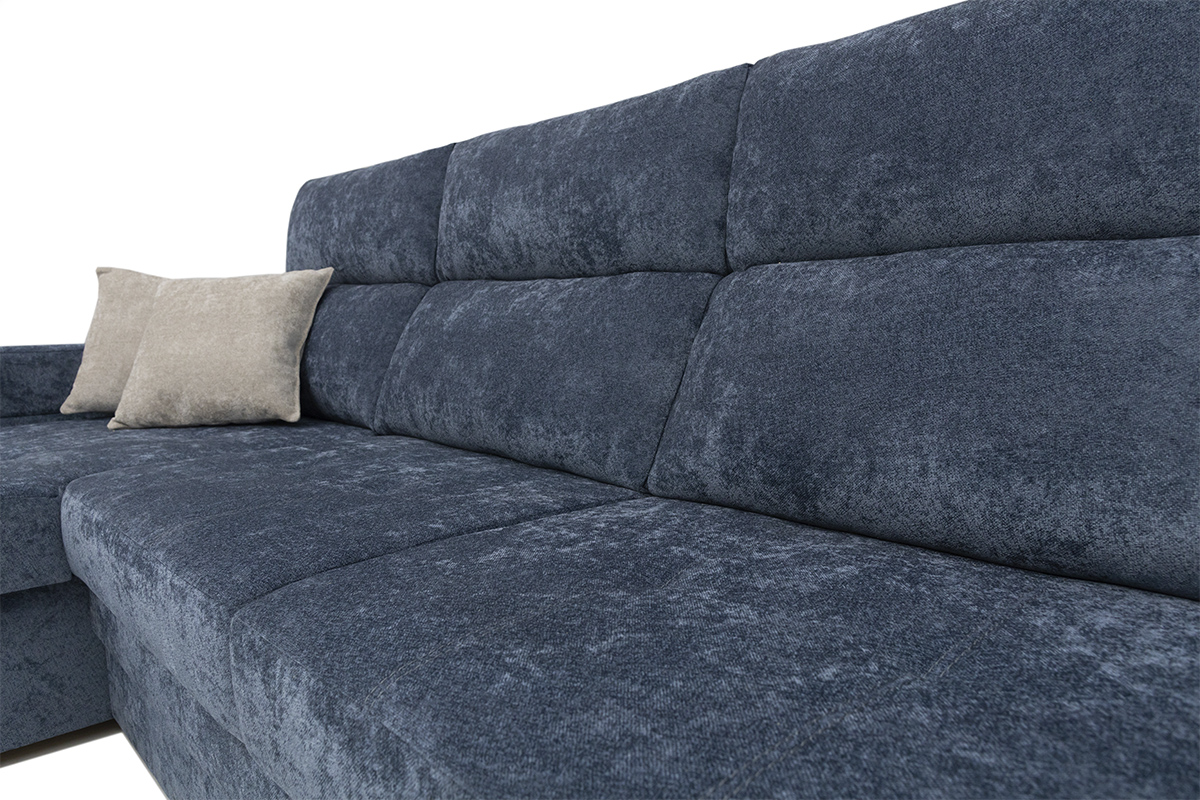 Диван-кровать угловой Наоми современная модель, с большим спальным местом. В разложенном виде представляет удобную 2-х спальную кровать. Сидение на основе независимого пружинного блока, пружинной змейки и ППУ. Основание сидения и спинки – пиломатериалы хвойных пород. Имеется емкость для постельных принадлежностей в угловой части дивана. Подушки спинки не съемные, оснащены механизмом, который позволяет менять угол наклона. В комплект входят 2 декоративные подушки. Боковины на зацепах, одна длинная возле углового сектора и одна короткая. Возможна комплектация левого и правого угла. Может изготавливаться в разных цветовых решениях. Механизм трансформации — «дельфин».