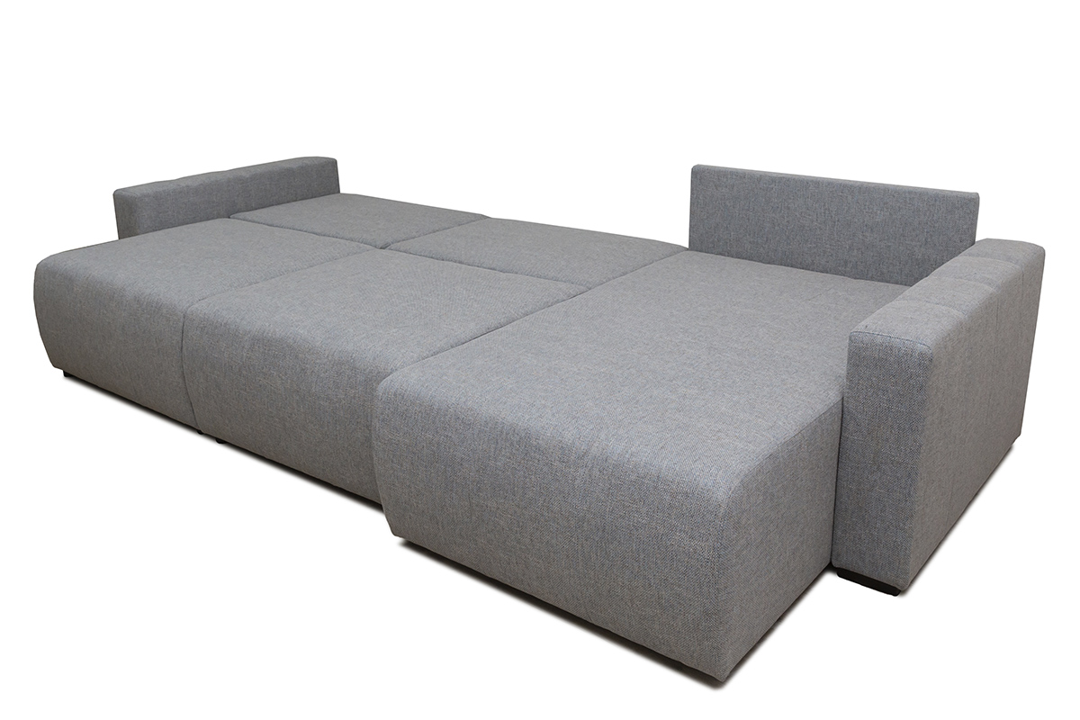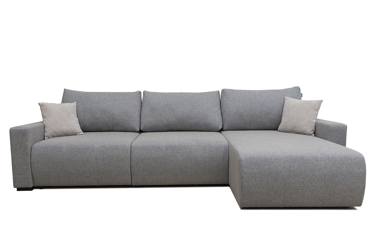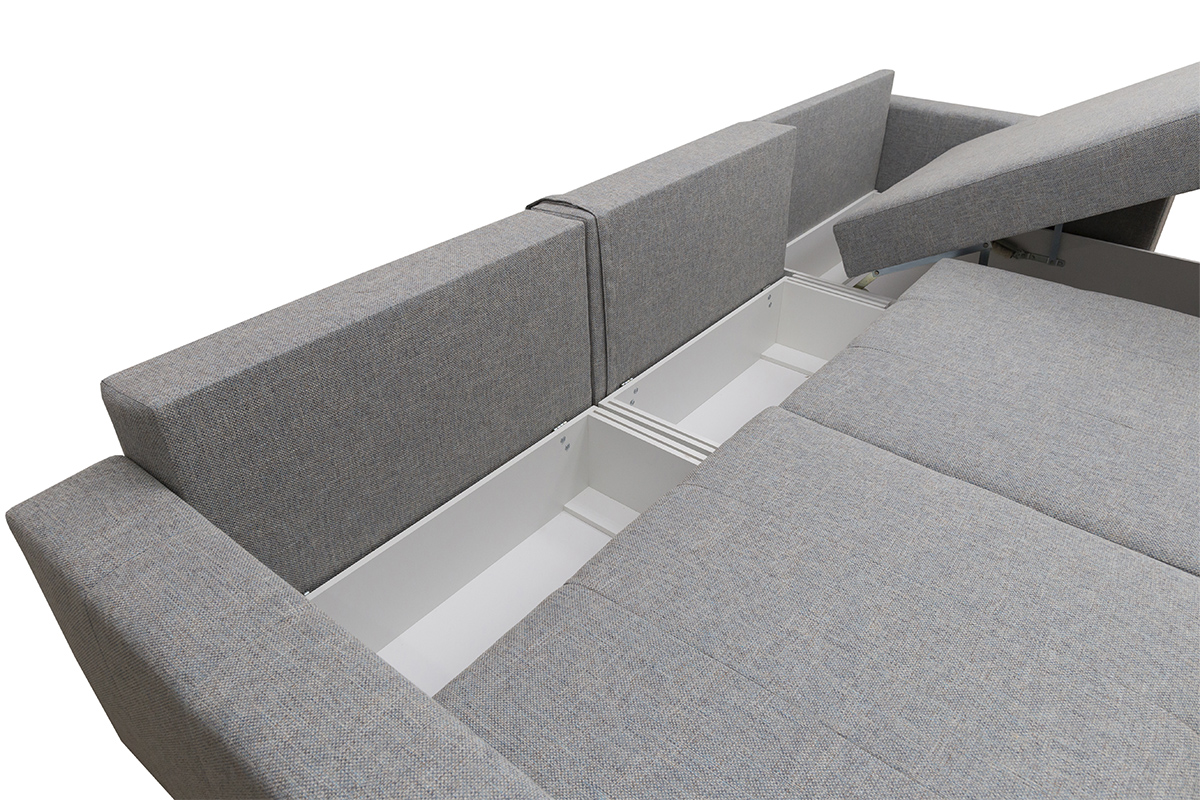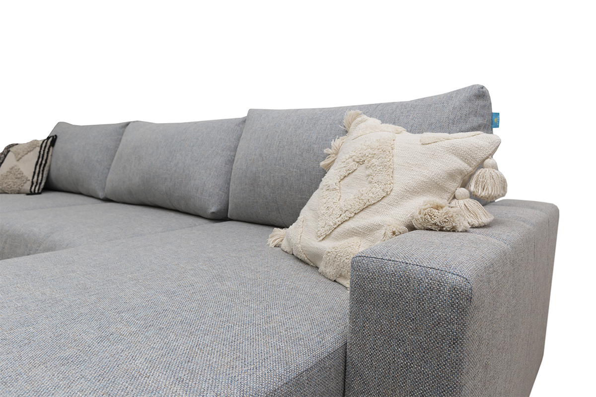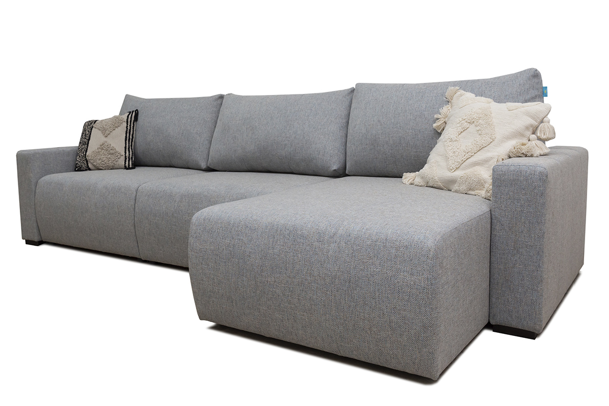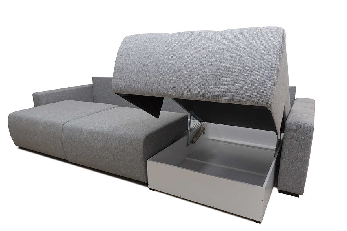 Диван-кровать угловой Роми состоит из двух малых секций, угловой секции с подъемным механизмом, двух боковых секций, 3-х больших и двух маленьких декоративных подушек.