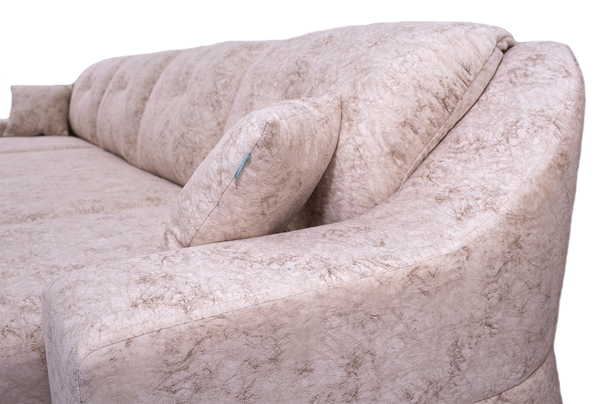 Бежевый угловой диван с накладками на подлокотниках