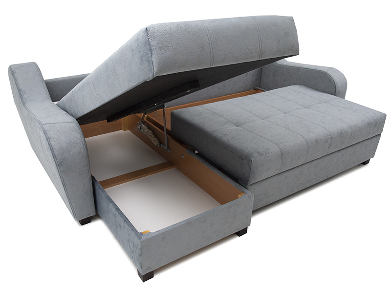 - Диван-кровать угловой Ярослава состоит из средней секции и угловой секции с подъемным механизмом и ящиком для хранения, 3-х больших и двух маленьких декоративных подушек.