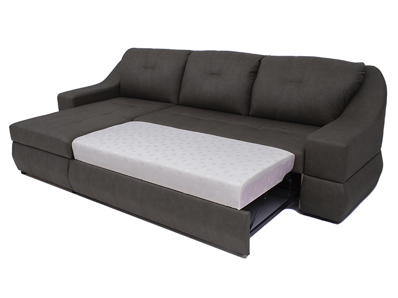 - Механизм трансформации — «дельфин».Самый популярный механизм из-за всеобщей моды на угловые диваны.