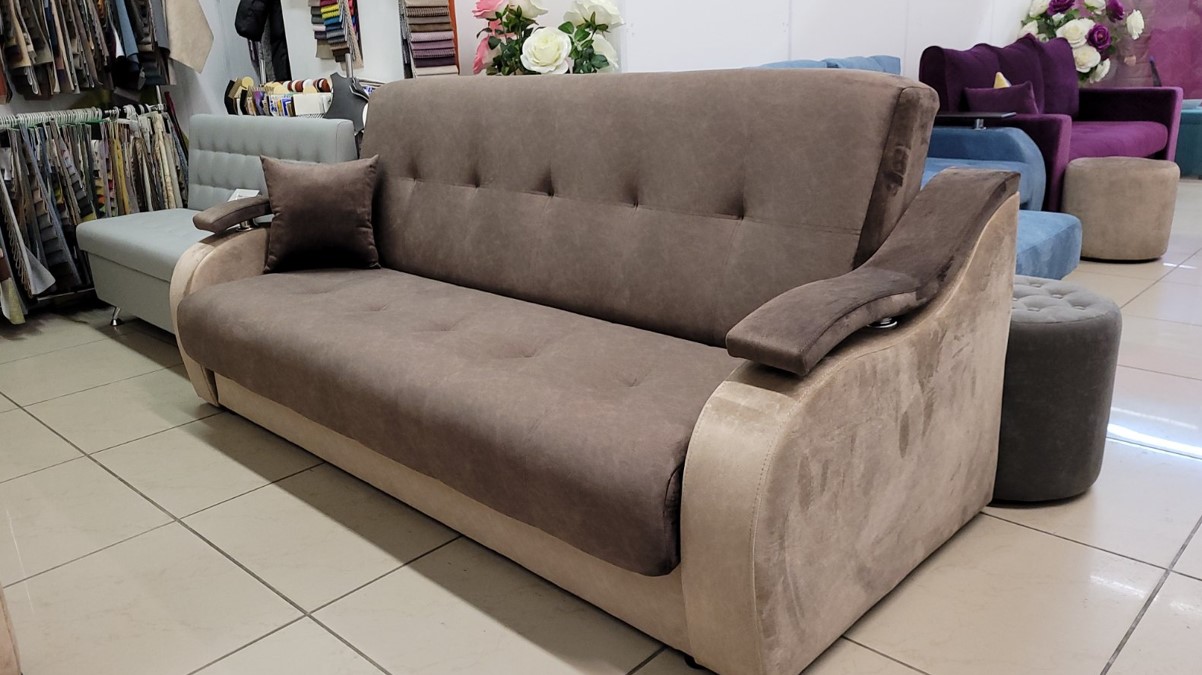 Двухместный диван с механизмом трансформации. Имеется бельевой ящик.