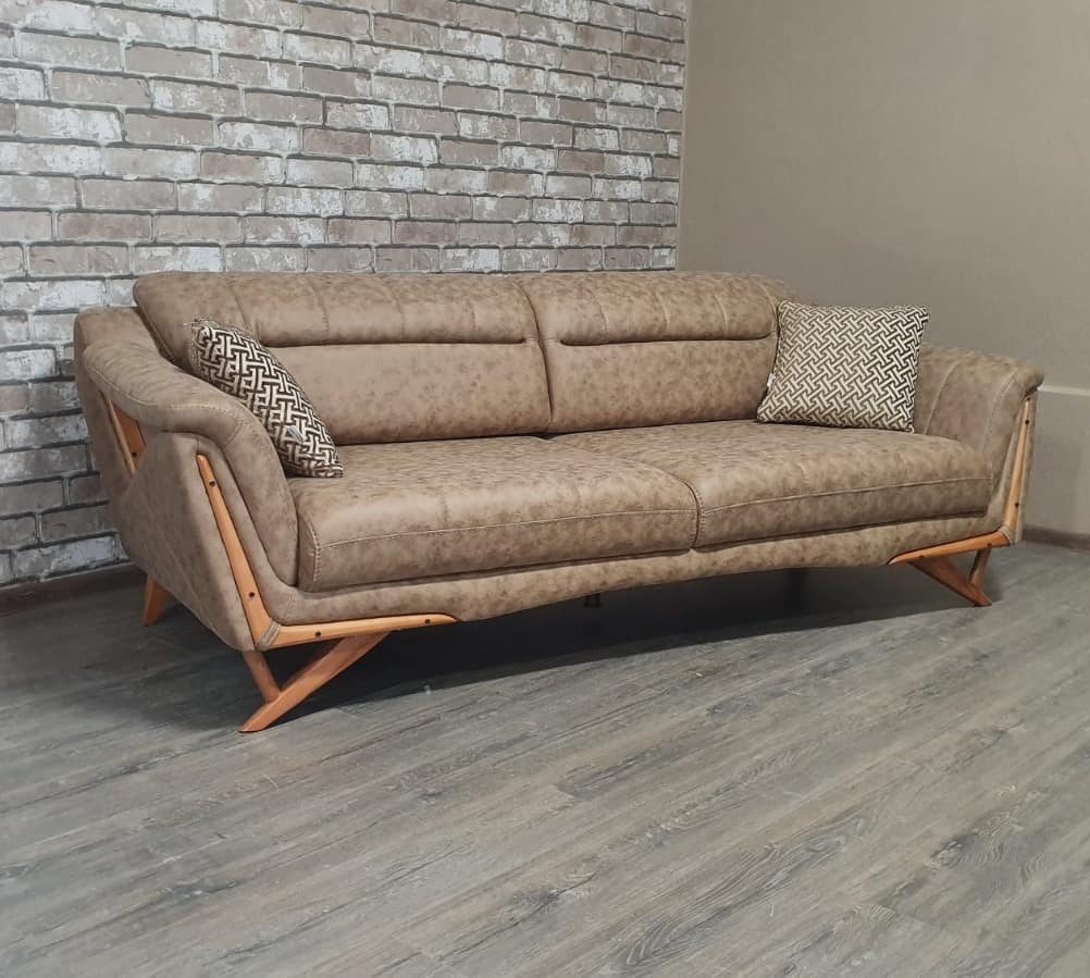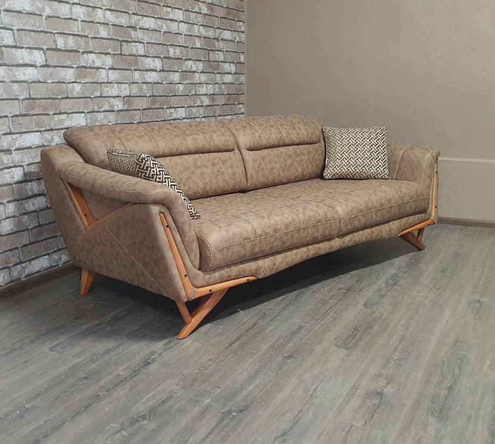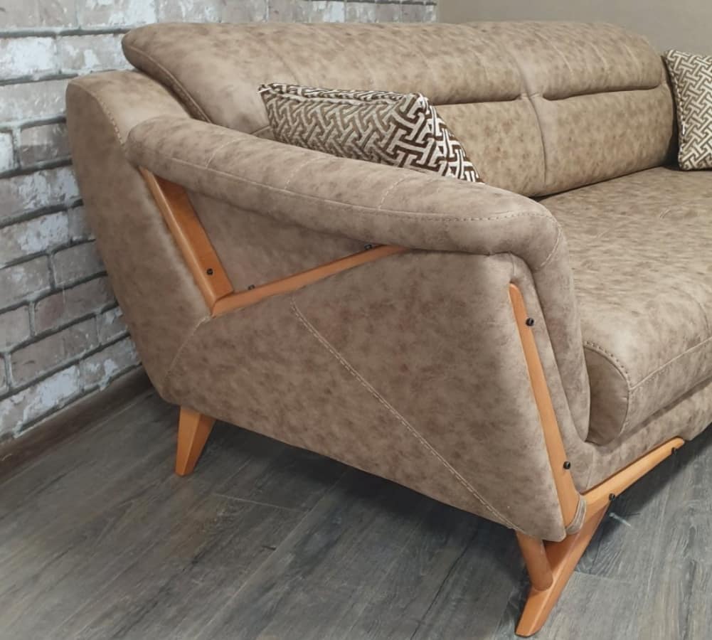 Удобный и функциональный диван светло-коричневого цвета.