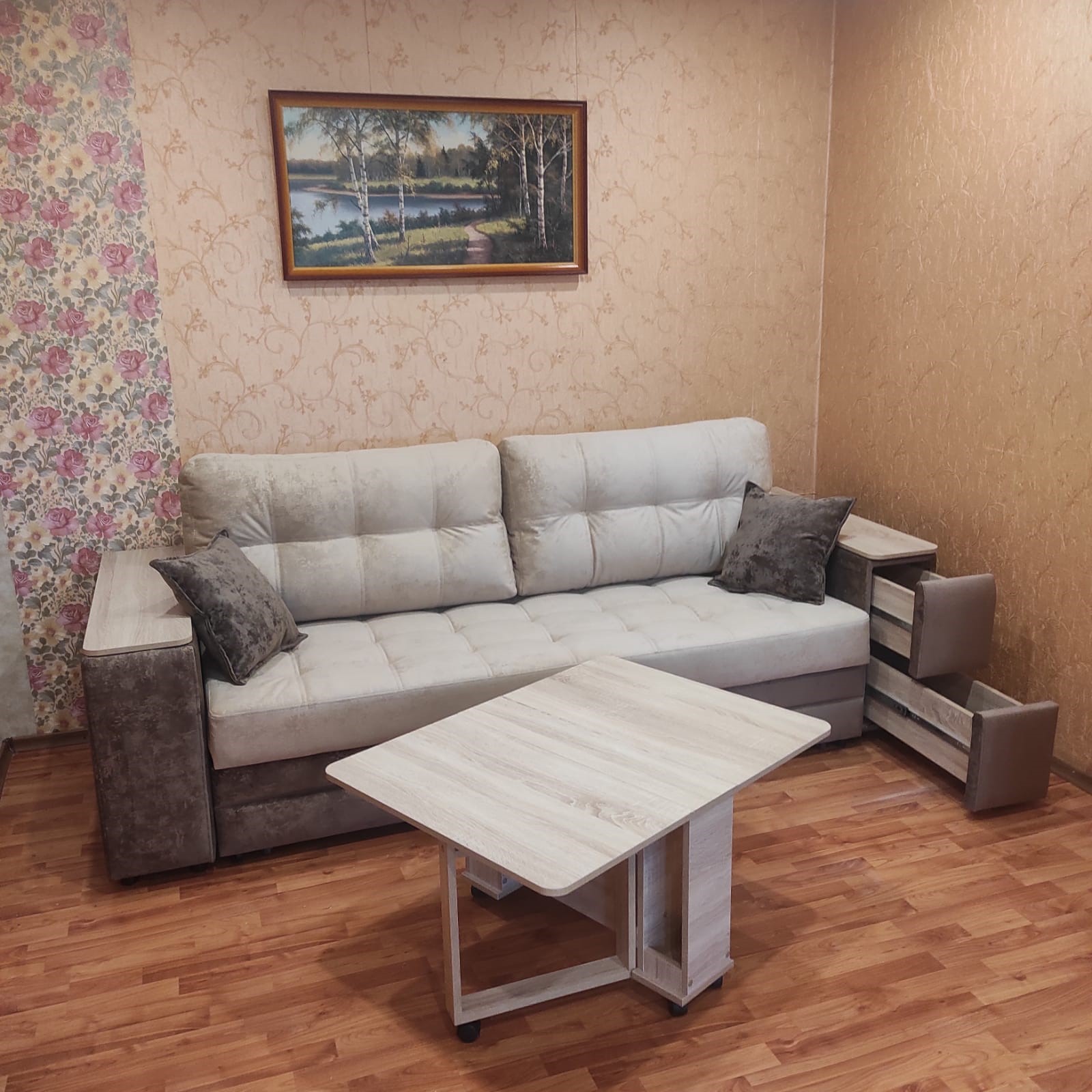 Квадратная стяжка бархатистой обивки. Простой механизм раскладки.