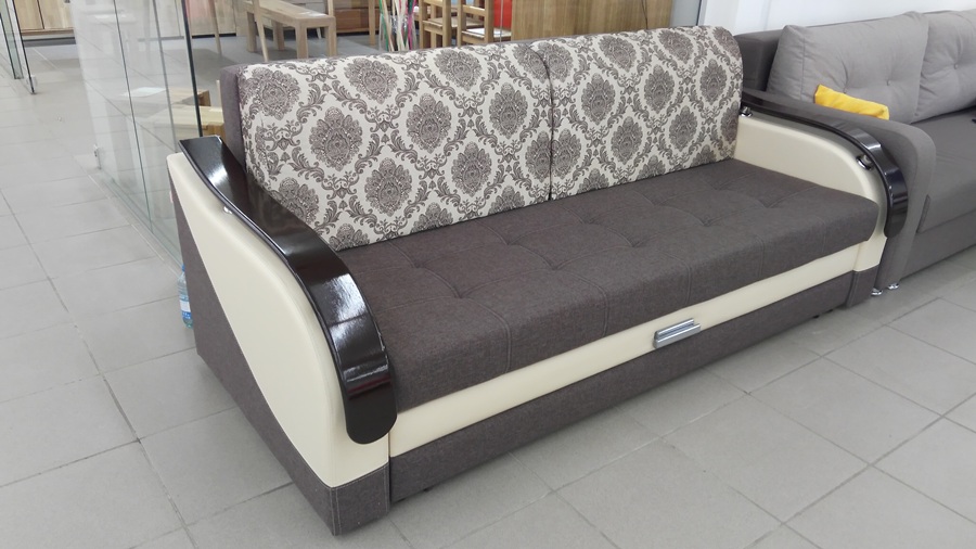 Удобный диван с металлическим каркасом и двумя вариантами спального места.