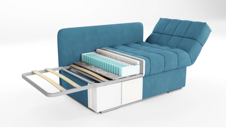 Надежный механизм трансформации Лит легко превращает гостевой диван в полноценное спальное место, достаточно лишь нажать на подлокотник. В основании механизма – усиленная металлическая рама, что обеспечивает повышенную прочность и безопасную ежедневную трансформацию.