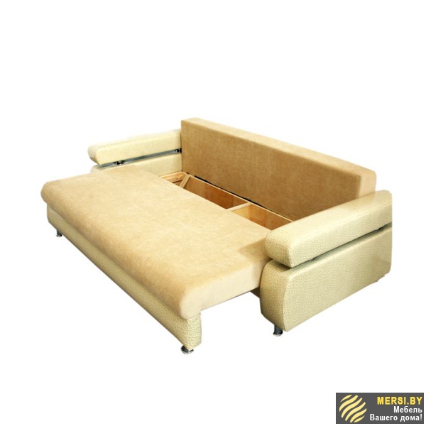 Раскладной прямой диван с большим отсеком для постельного белья.