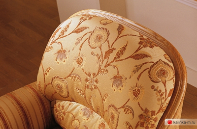 Раскладной линейный диван «Калинка 43» выполнен в светлых песочных оттенках. На ткани изображен нежный цветочный рисунок и полосы. Фигурные подлокотники придают изделию изысканный внешний вид.