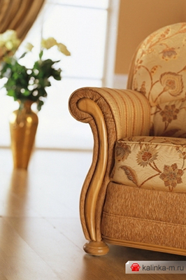 Отделка дивана выполнена декоративными элементами из натурального ясеня. На каркас устанавливается металлическая пружина-змейка, обеспечивающая комфорт и надежность.