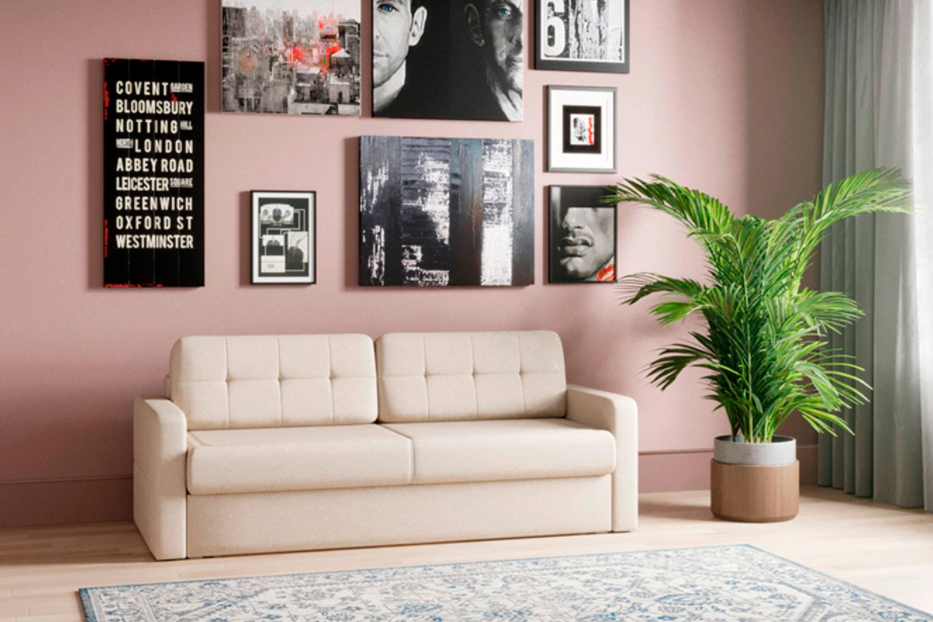 Прямой диван для гостиной Loko с механизмом трансформации «Пантограф» – стильный и компактный. Средняя глубина сиденья обеспечит ежедневный комфорт и детям, и взрослым.