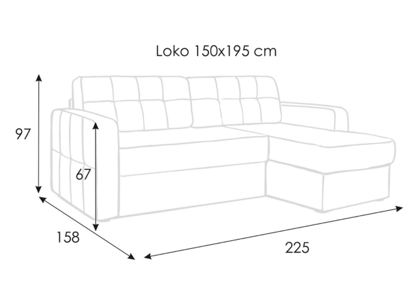 Угловой диван для гостиной Loko с малым канапе и механизмом трансформации «Дельфин» – стильный и компактный. Средняя глубина сиденья обеспечит ежедневный комфорт и детям, и взрослым.