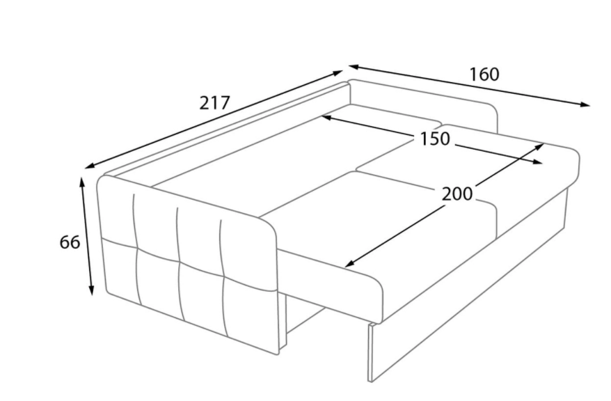 Размеры: 2180x1200x890 мм. Механизм: еврокнижка. Бельевой ящик: да.