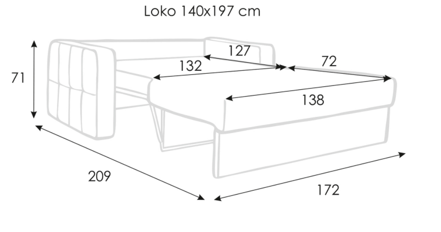 Прямой диван для гостиной Loko с широкими подлокотниками – c механизмом трансформации «Серджио».