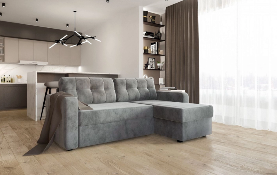 Угловой диван для гостиной Loko с малым канапе и механизмом трансформации «Дельфин» – стильный и компактный. Средняя глубина сиденья обеспечит ежедневный комфорт и детям, и взрослым.