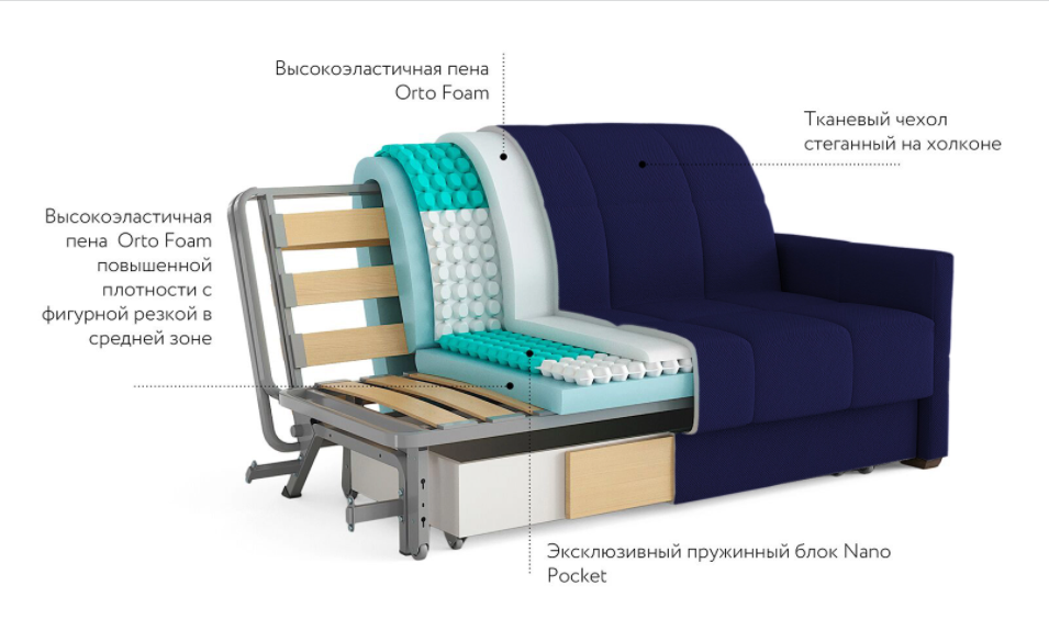 Механизм раскладки: еврокнига. Имеется ящик для белья.