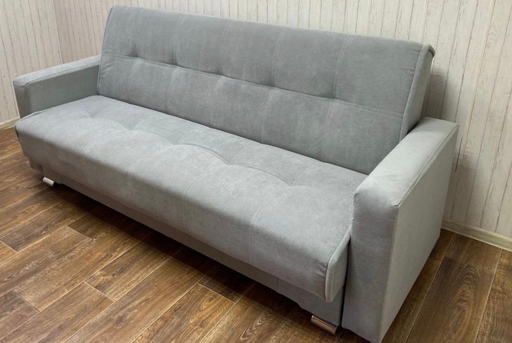 Компактный раскладной диван-«еврокнижка» с пенополеуретановым наполнителем.