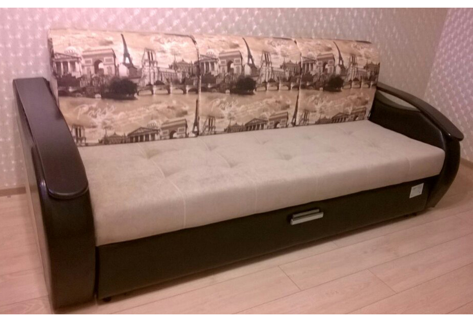 Трехместный диван «Люксор» выполнен в современном стиле и имеет основание из коричневой экокожи, дополненное интересными изогнутыми подлокотниками из дерева. Светлое основание прекрасно сочетается со спинкой, декорированной при помощи фотопечати.