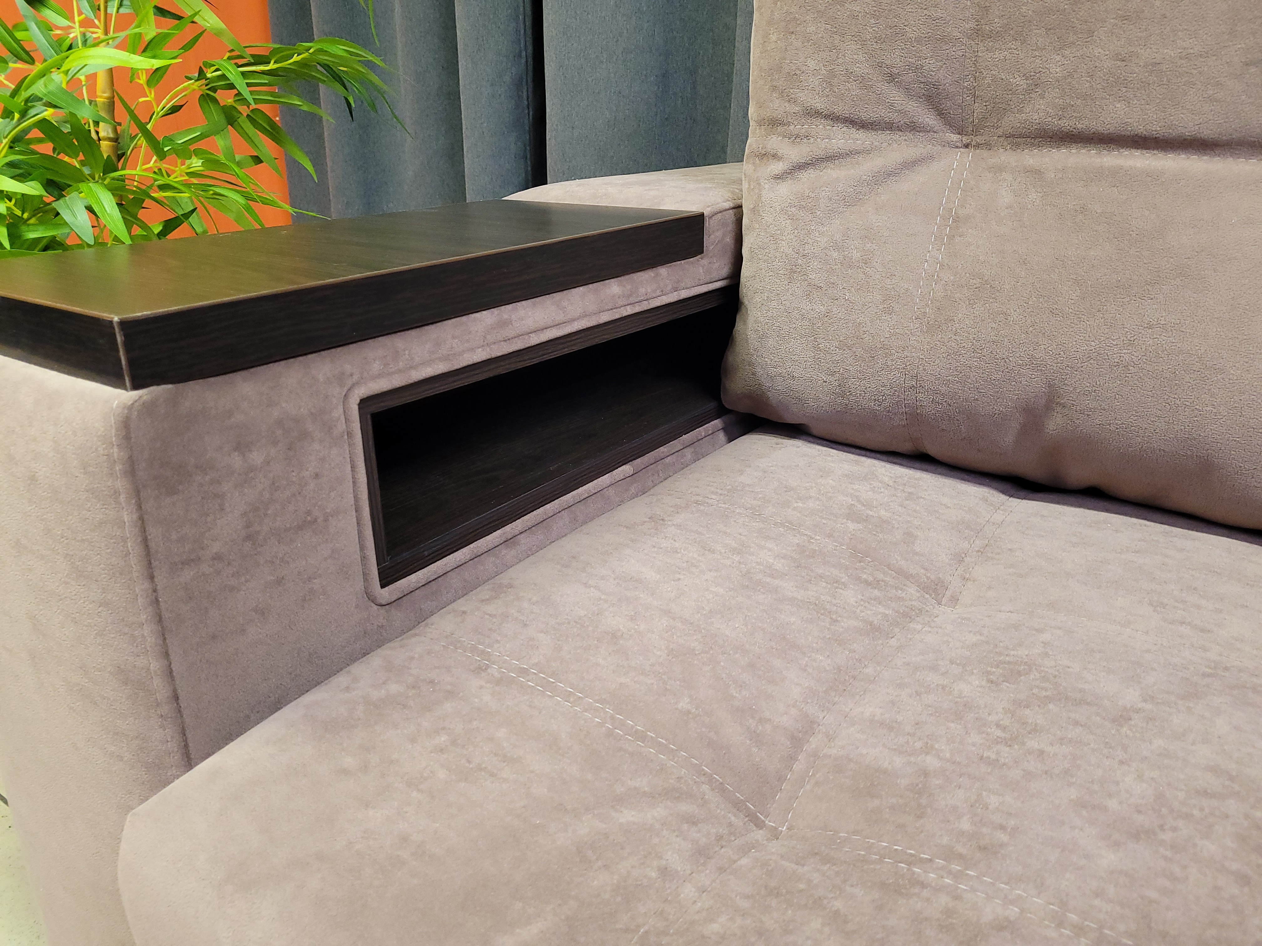 Габариты: 2900х1050 мм. Подлокотник с нишей и розетками. Регулируемые подголовники. Ткань Велюр.