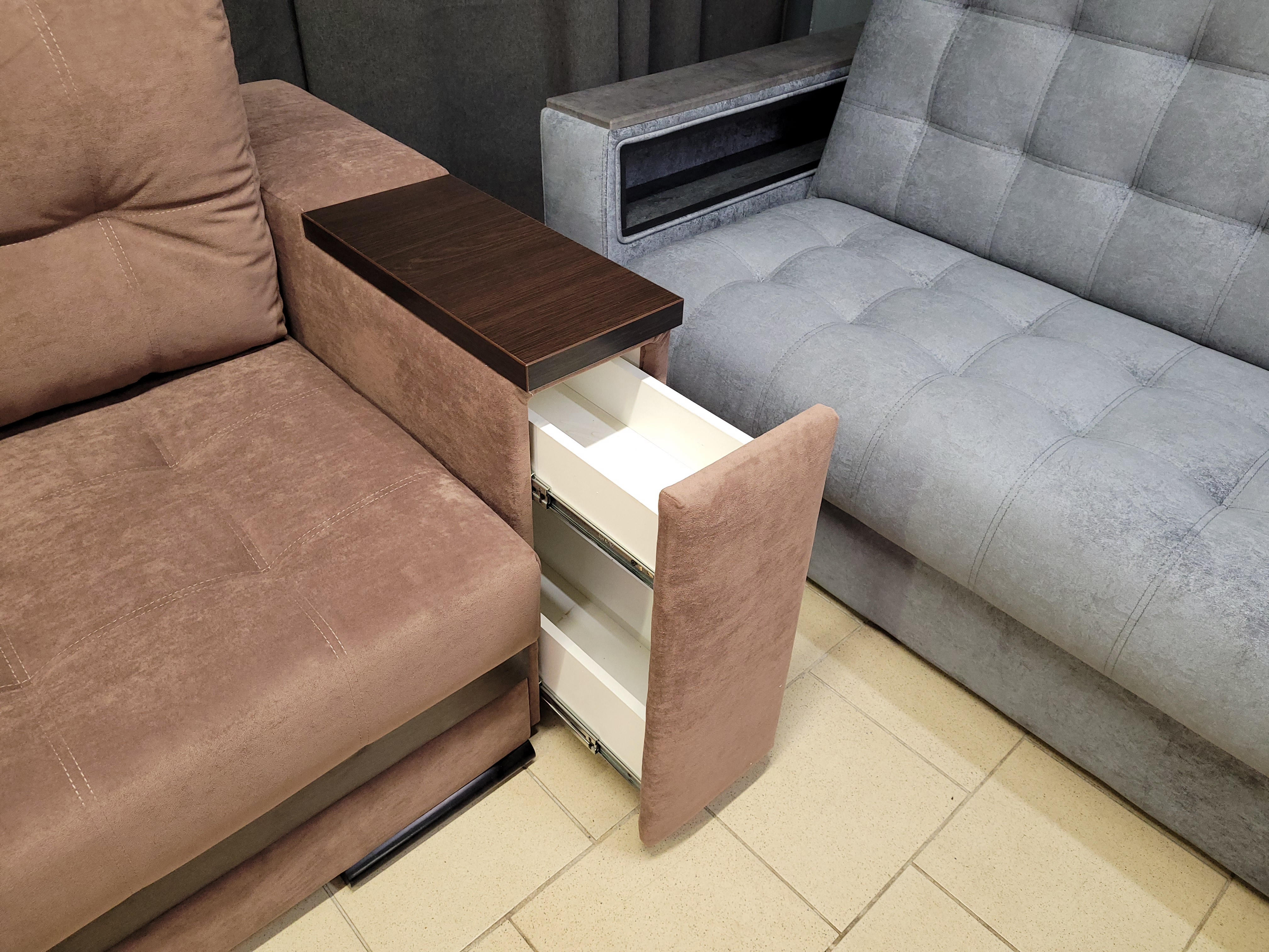 - бар, столик или полки можно установить в два подлокотника, или только в один (справа или слева);
