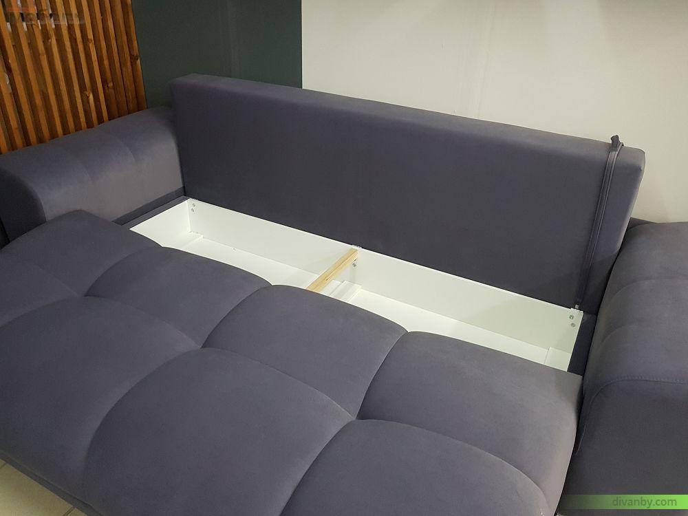 Подушки на угловой спинке и боковины украшены контрастной белой прострочкой.