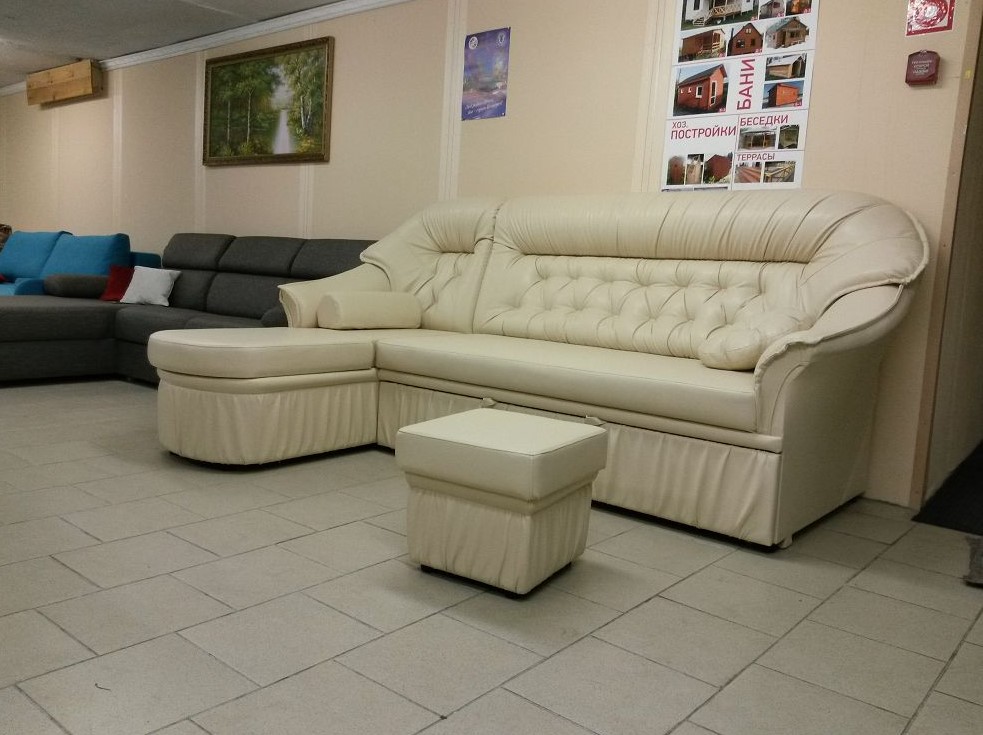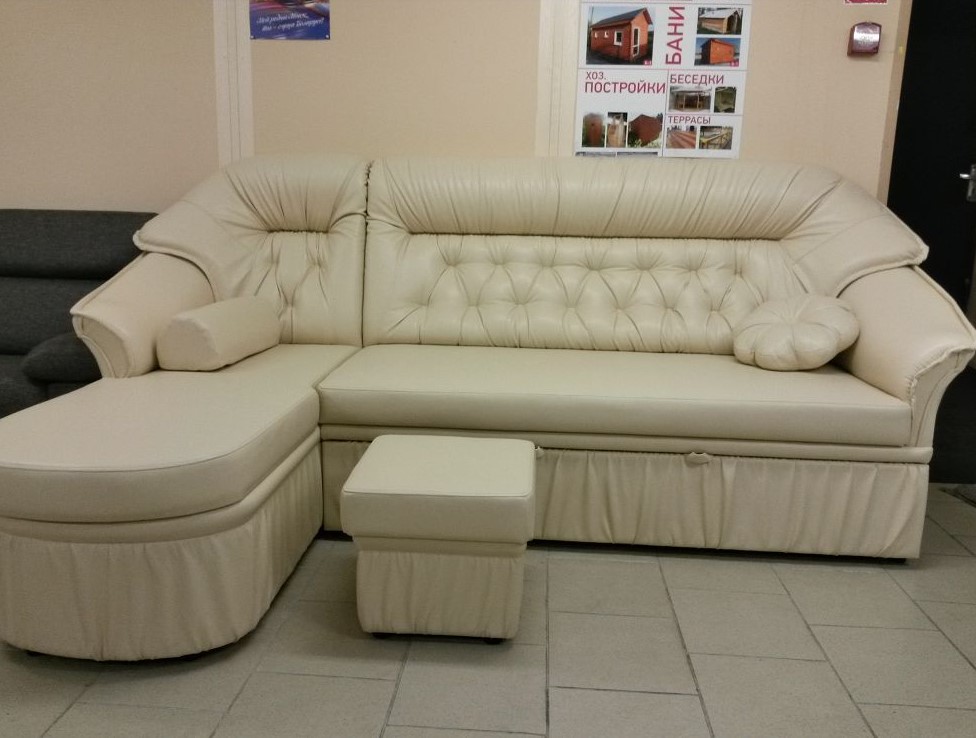 Прямой светлый диван с кожаным основанием. Множество вариантов цвета. Ящик для хранения.