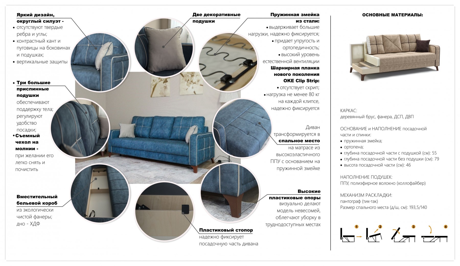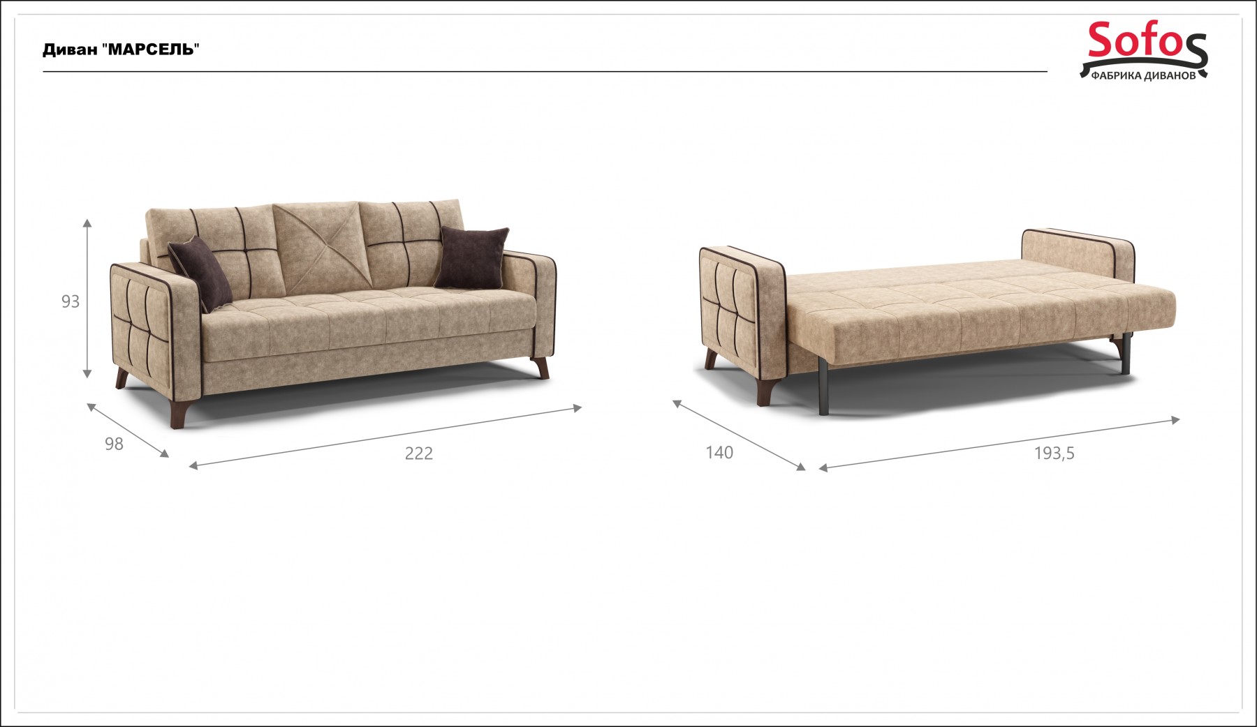 Габариты (ДхШхВ): 2370х1050х900 см. Блок независимых пружин. Механизм: «Еврокнига».