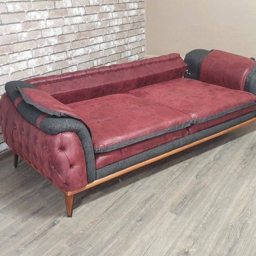 Ящики в подлокотниках и столик. Настил: ортопедические латы + ППУ.
