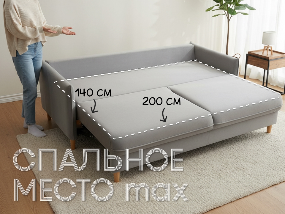 Размеры спального места, см: 200×140 (в разложенном виде), 200×80 (в неразложенном виде).