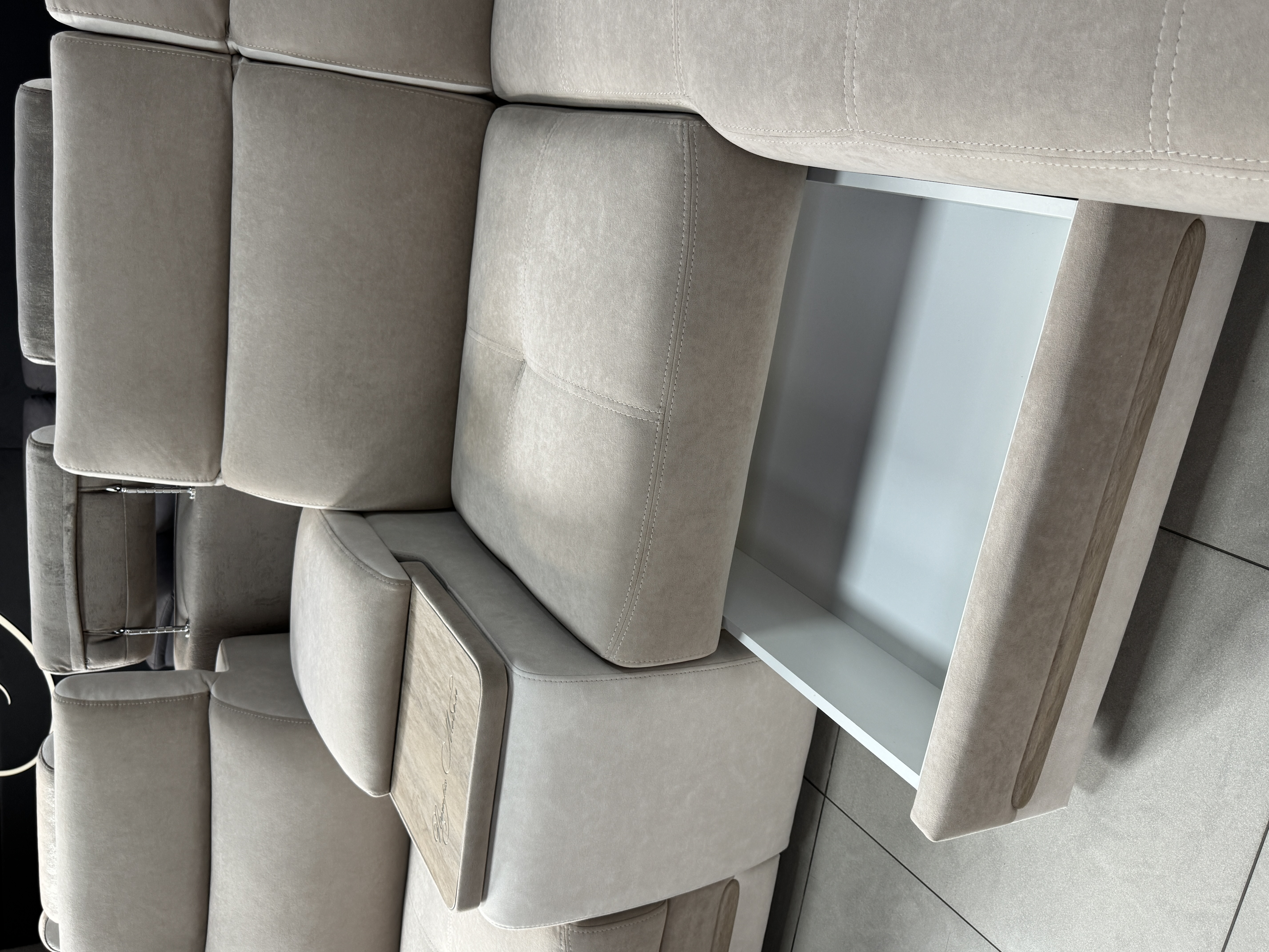 - Диван можно оснастить реклайнером с электроприводом. Клавиши управления сенсорные (работают от прикосновения).