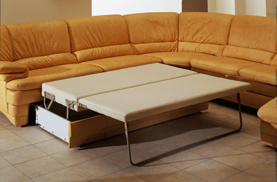 Угловой диван «Калинка 39» легко может превращаться в удобную кровать, благодаря уникальным немецким системам трансформации «Stawett» или «Lusch».