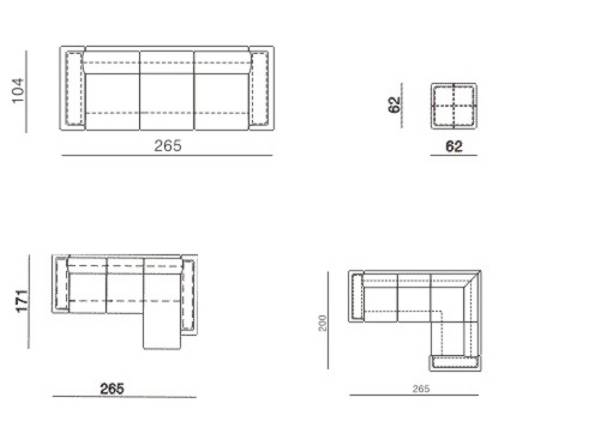 Высота модели: 95 см, 94 см (углового диван с канапе); высота сиденья: 48 см, 43 см (углового диван с канапе).